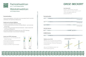 Die Groz-Beckert Mediathek bietet Ihnen zahlreiche Informationen zum Unternehmen und zum Produkt- und Serviceportfolio. Dabei haben Sie die Möglichkeit, gezielt nach Animationen, Videos und Broschüren zu suchen.